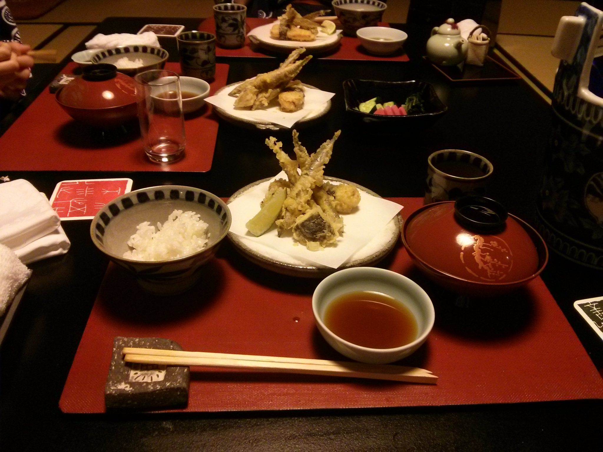 After the hot spring we had a kaiseki dinner for the first time in our lives. The term kaiseki usually refers to a multi-course haute cuisine traditional Japanese dinner as well as to the skills required to prepare it. The dinner usually consists of 10-15 dishes, artistically arranged and served on individual plates. We had our dinner in our room and all the dishes were ushered by a nice maid, who first introduced herself and told us about the dinner. She also provided a brief explanation for each dish she was bringing in.
